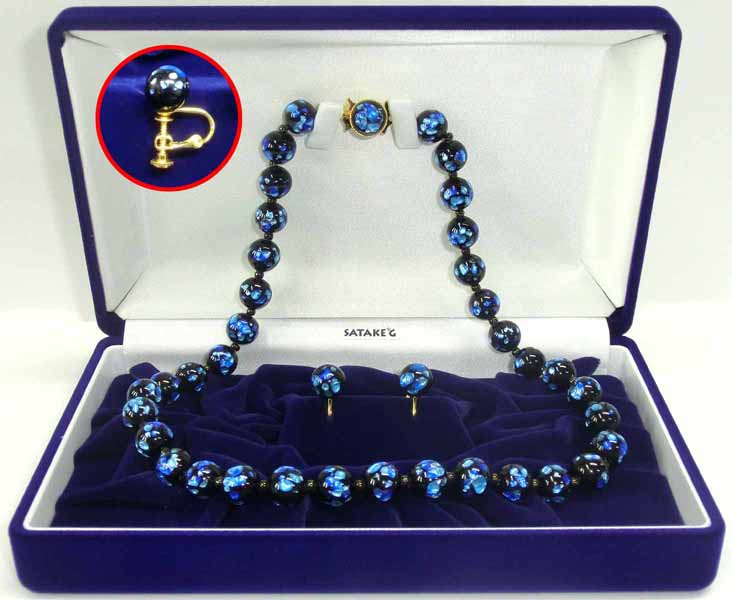 ホタル玉 青色 ネックレス・イヤリングset